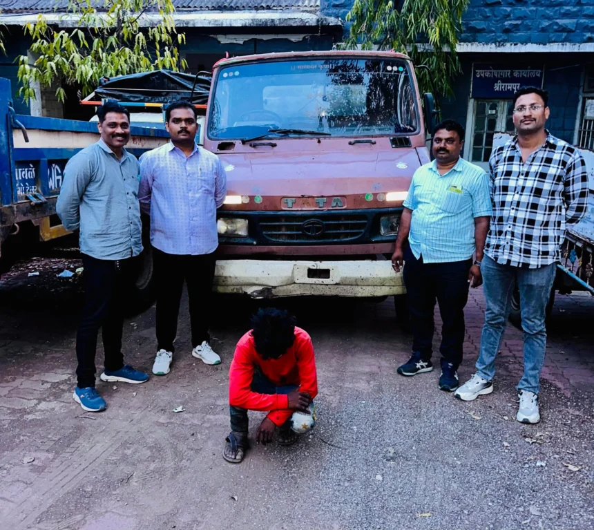 अवैध वाळु वाहतुक करणाऱ्याविरूध्द स्थानिक गुन्हे शाखेची कारवाई आरोपीकडून  ७,२०,००० रू किंमतीचा मुद्देमाल हस्तगत. मा. पोलीस अधिक्षक,अहिल्यानगर यांनी श्री. दिनेश आहेर स्थागुशा अहिल्यानगर यांना जिल्ह्यातील अवैध धंदयावर कारवाई करण्याचे आदेश दिले आहेत. त्या अनुषंगाने श्री. दिनेश आहेर यांनी स्थानिक गुन्हे शाखा व तपास पथकातील पोलीस अंमलदार गणेश लोंढे, सोमनाथ झांबरे, रणजीत जाधव, रमीजराजा आत्तार, विशाल तनपुरे यांचे पथकास अवैध धंदयाविरुध्द कारवाई करण्यासाठी रवाना केले. दिनांक १३/०५/२०२५  रोजी पथक श्रीरामपूर तालुका पोलीस ठाणे हद्दीत अवैध धंदयाची माहिती काढत असताना गोपनीय माहिती मिळाली की भामाठाणकडून टाकळी भानच्या दिशेने एका विटकरी रंगाचे टेम्पोमधुन एक इसम वाळुची चोरून वाहतुक करत आहेत. मिळालेल्या माहितीवरून पथकातील पोलीस अंमलदार भामाठाण ते टाकळीभान जाणारे रोडवर, शिवशंभो महादेव देवस्थान, टाकळीभान, ता.श्रीरामपूर येथे सापळा रचुन थांबले असताना संशयीत विटकरी रंगाचा टेम्पो दिसून आल्याने त्यास थांबवून पंचासमक्ष टेम्पाची तपासणी केली असता त्यामध्ये वाळु दिसून आली. घटनास्थळावरून  टेम्पो चालक सोमनाथ बाळसाहेब मोरे, वय २३ , रा.भामाठाण, ता.श्रीरामपूर, जि.अहिल्यानगर यास ताब्यात घेतले. ताब्यातील आरोपीस टेम्पोचे मालकीबाबत विचारपूस केली असता त्याने सदरचा टेम्पो स्वत:च्या मालकीचा असल्याचे सांगीतले. आरोपीकडे वाळु वाहतुकीचा परवाना नसल्याने त्याचे ताब्यातील ७.००.००० रू किंमतीचा टाटा कंपनीचा विना क्रमांकाचा टेम्पो व २०,००० रू किंमतीची वाळु असा एकुण ७,२०.००० किंमतीचा मुद्देमाल जप्त करण्यात आला. आरोपीविरूध्द श्रीरामपूर तालुका पोलीस स्टेशन गुरनं २८५/२०२५ बीएनएस २०२३ चे कलम ३०३ (२ ), प्रमाणे गुन्हा दाखल केला असून गुन्हयाचा पुढील तपास श्रीरामपूर तालुका पोलीस स्टेशन हे करीत आहेत. सदरची कारवाई मा.श्री. राकेश ओला, पोलीस अधीक्षक, अहिल्यानगर, मा.श्री. वैभव कलुबर्मे, अपर पोलीस अधिक्षक, श्रीरामपूर, मा. श्री. बसवराज शिवपुजे, उपविभागीय पोलीस अधिकारी, श्रीरामपूर उपविभाग यांचे सुचना व मार्गदर्शनाखाली स्थानिक गुन्हे शाखेचे पोलीस अधिकारी व अंमलदार यांनी केलेली आहे.