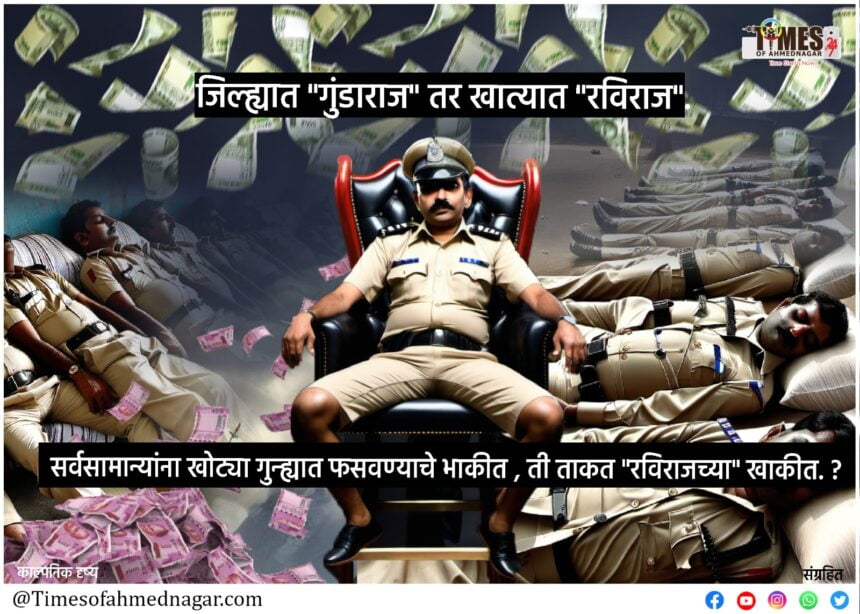 अहमदनगर जिल्ह्याला गुन्हेगारीने चांगलेच झोडपून काढले आहे. मिनिटामिनिटाला गुन्हेगारीच्या बातम्या सर्वसामान्य जनतेच्या मनात भीतीचे वातावरण तयार करत आहे. मात्र कोणत्या आरोपीवर काय गुन्हा दाखल करायचा,कोणत्या आरोपीला काय मदत करायची,किंवा कोणत्या तक्रारदाराला कस आणि कोठे फसवायचं याचा आदेश मात्र “रविराजच्या” हुकुमशाहीने निघत असतो.रविराज मालक जरी नसला तरी तो मालकांचा चालक असल्याचे बोलले जाते.